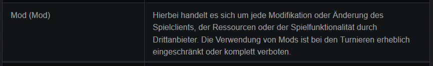 Wir empfehlen daher im Sinne des Fair-Plays, auf die Nutzung von gemäß Wargaming illegalen / vorteilsbringenden Mods vollständig zu verzichten!